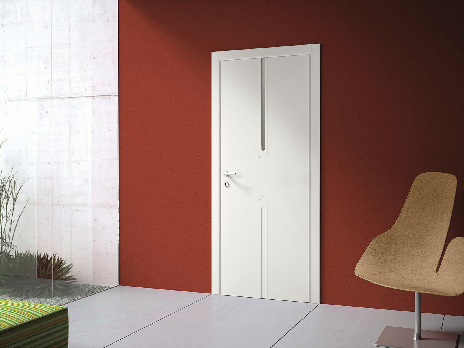 Dažytas durų paviršius suderintas su klijuotu natūralaus uosio lukštu