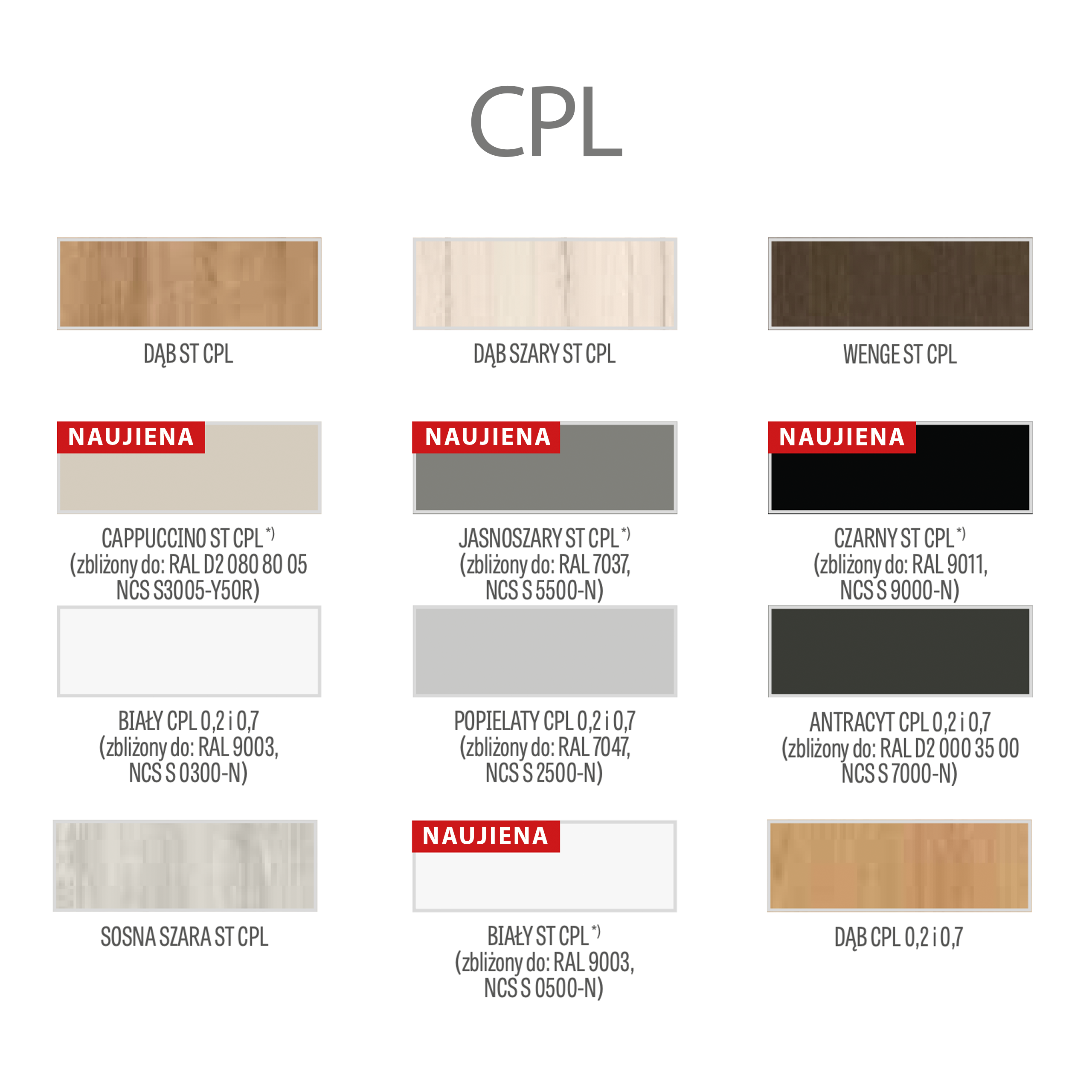 • Sidabriniai 2 dalių horizontaliai reguliuojami vyriai užlaidinėje varčioje, lygiabriaunėje varčioje paslėpti vyriai (už papildomą kainą )
