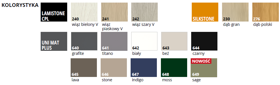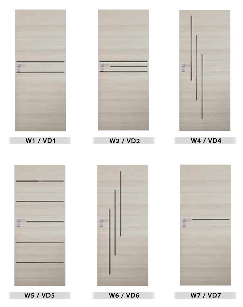 • Sidabriniai 2 dalių horizontaliai reguliuojami vyriai užlaidinėje varčioje, lygiabriaunėje varčioje paslėpti vyriai (už papildomą kainą )