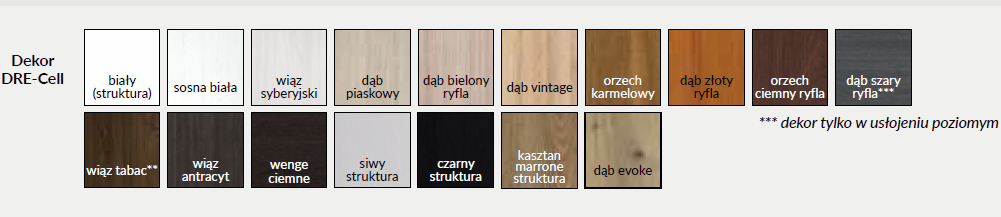 • Sidabriniai 2 dalių horizontaliai reguliuojami vyriai užlaidinėje varčioje, lygiabriaunėje varčioje paslėpti vyriai (už papildomą kainą )